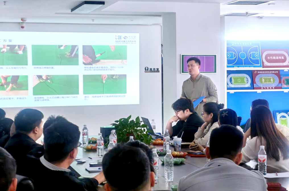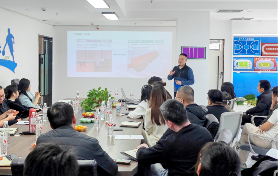 在专项讲解结束后,销售团队围绕“草坪工艺与卖点衔接”“预制型跑道特性与竞品分析”等重点内容进行了集中复盘。各位讲师针对大家提出的问题给予了细致解答,进一步助力团队将所学内容融会贯通,运用到实际业务中去。
